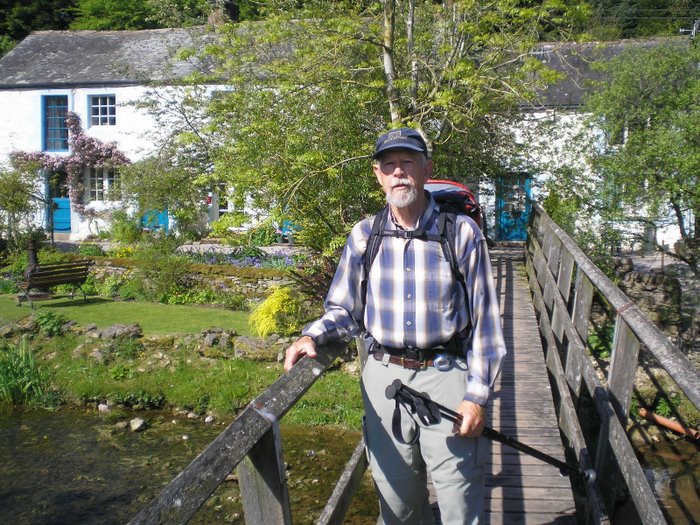 A giant sycamore with a church behind is a main attraction of Great Ormside. From here it's mostly a road walk to Rutter Force and the old mill, now a tourist shop. A couple took my photo on the footbridge over Hoff Beck.