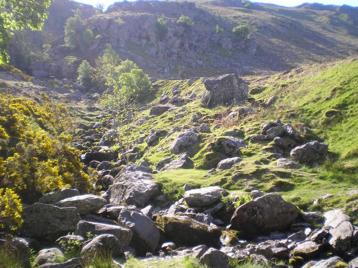 boulders that tumbled down from the crags of