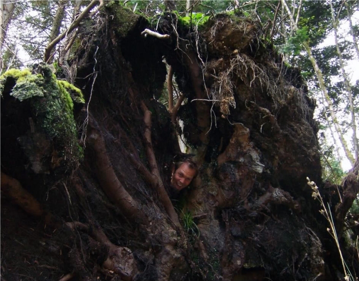 Head in tree root